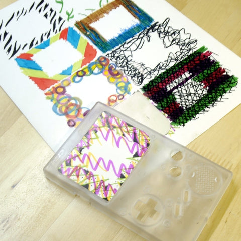 просто нарисуйте, акварель, распечатайте, раскрасьте, спрей и т. д. все, что захотите, на одной из наклеек на листе, снимите, нанесите на gameboy и поместите прозрачную пленку на свою наклейку (посмотрите все фотографии, пример).